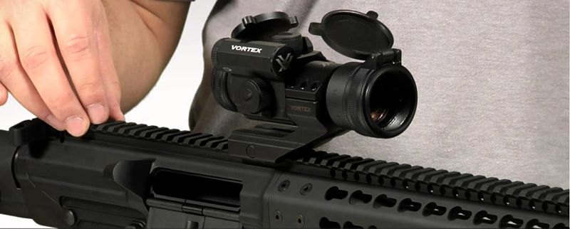 El tubo es de 30 mm, la medida más difundida entre cualquier tipo de visor por lo que es fácil encontrar la solución de instalación que deseemos. Ahora bien, con el visor vienen con una montura elevada pensada para la plataforma AR-15 que permite una configuración co-witness de las miras de hierro. La montura no es de tipo desmontable, pero su colocación es trivial con herramientas básicas o incluso una simple moneda.